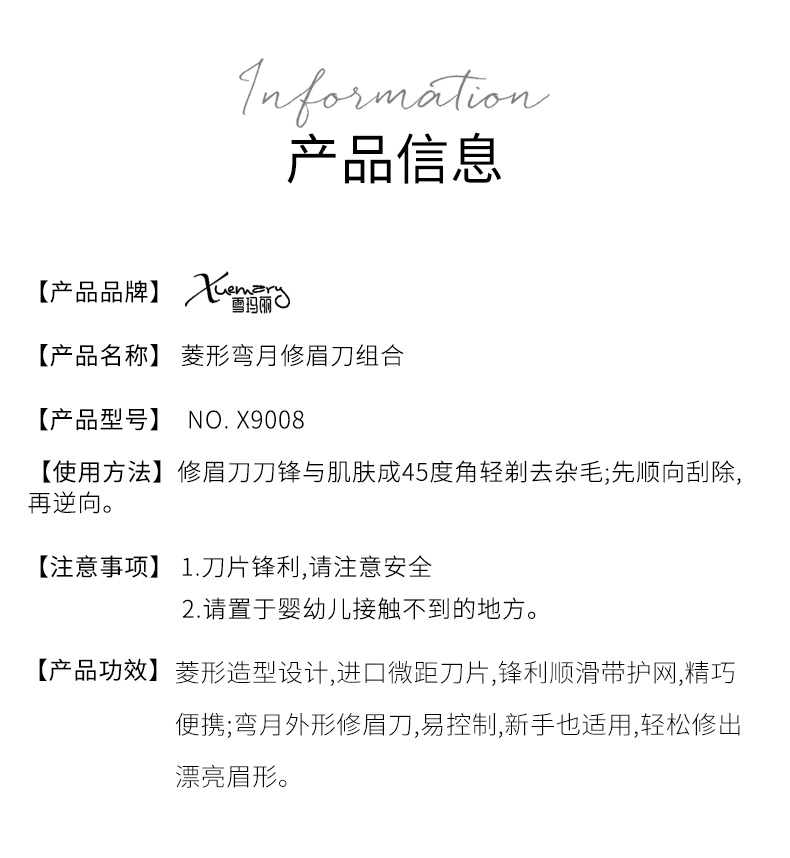 X9008-菱形弯月修眉刀组合